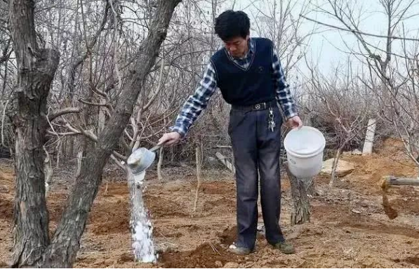 就是树干涂白,这可以起到防止日灼和冻害的作用,可延迟果树的萌芽和开花,避免晚霜危害,还可兼治树干病虫害,即杀死在树皮缝中越冬的害虫。涂白部位以主干为主,以及主枝、骨干枝基部,树干南面和树杈向阳面重点涂,注意不要涂到芽上,以免烧芽。