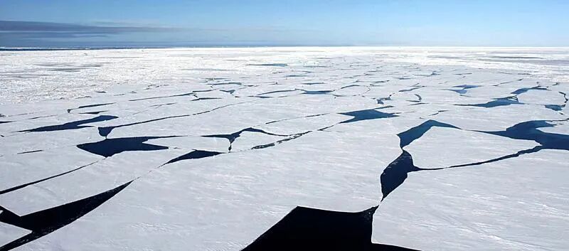 消融的北极海冰。不同于南极大陆,北极总体上是一片海洋。|NASA