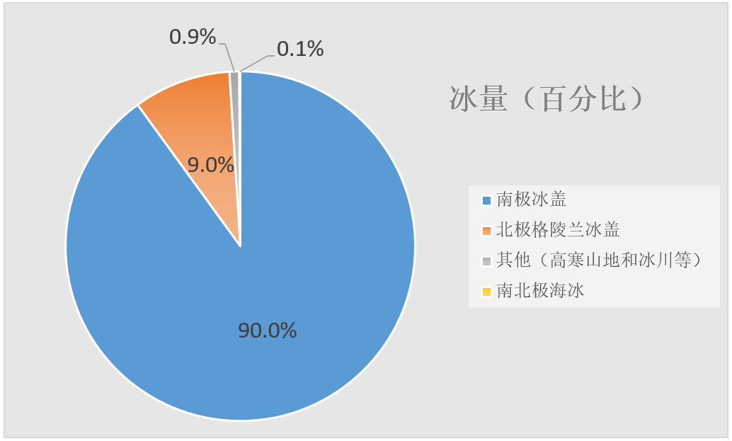 冰盖并非是极地冰存在的唯一形式,冰川、海冰也充斥在两极地区。它们虽然体积和冰盖不能相比,但面积非常可观。由于地理分布的不同,两极海冰的厚度和夏季的融化情况不尽相同。