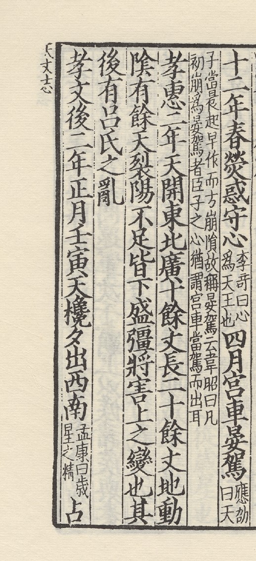另一次较早且可靠的极光记录,可能是发生于公元前193年,《汉书·天文志》对此记有:“孝惠二年,天开东北,广十馀丈,长二十馀丈。地动,阴有馀;天裂,阳不足。皆下盛疆将害上之变也。”此外,对于汉文帝十四年(公元前166年)的一次极光,《汉书·郊祀志》也记有;“赵人新垣平以望气见上,言长安东北有神气,成五色,若人冠冕焉”。这些内容则将极光出现的方位、颜色以及形状都说得相对比较清楚。
