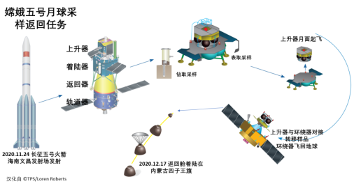 仅仅一年之后,破茧重生的长征五号火箭带着嫦娥五号挑战了更高难度——月球采样返回。