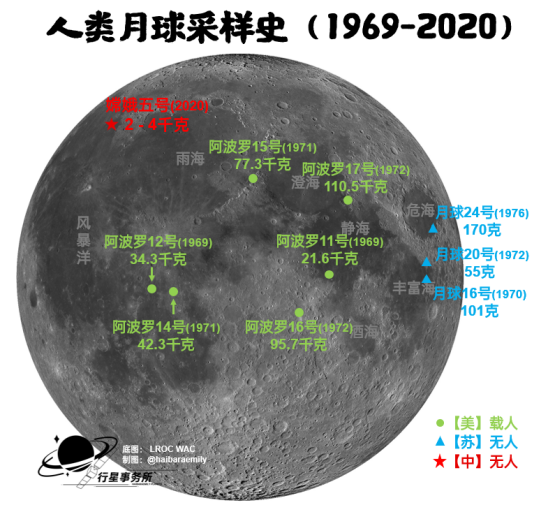受限于火箭运力和返回方式(阿波罗返回时采用交会对接,而月球号则是上升器从月面起飞后直接返回),三次月球号任务采回的样品都只有几十到一百多克,相比于阿波罗任务实在不算多。