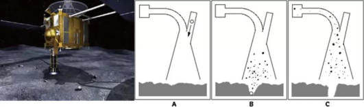 隼鸟号的采样杆接触小行星表面示意