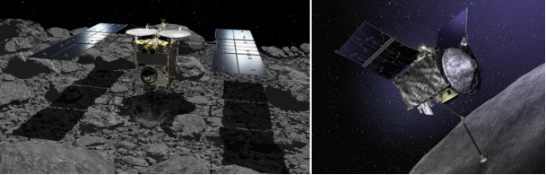 隼鸟2号(左)和冥王号(右)艺术想象 | JAXA、NASA
