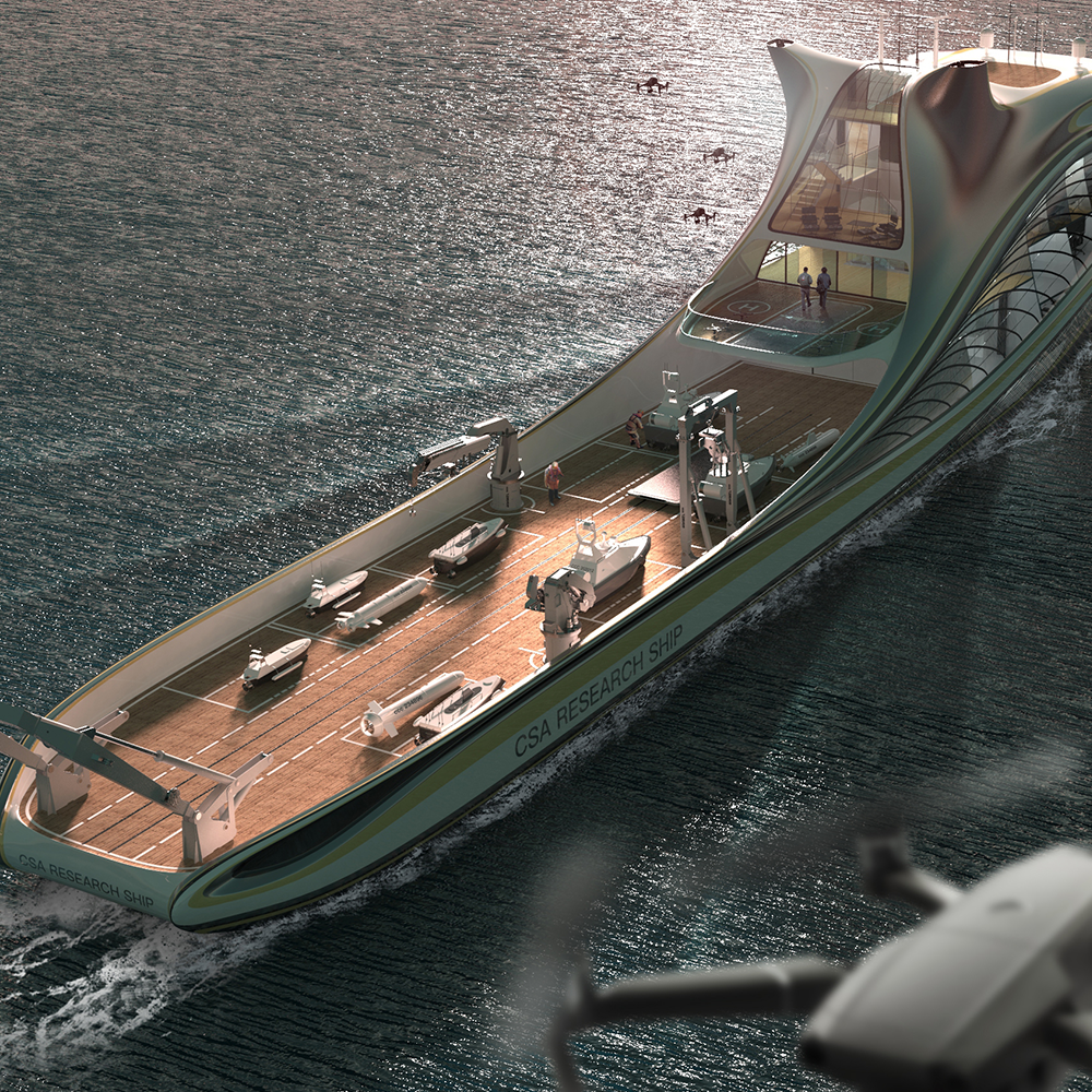 智能型无人系统母船在外形设计上也极具“未来感”。中国舰船研究设计中心上海分部副总师马忠俊表示,母船在设计上贯彻了“未来感”“无人系统保障”“绿色智能”三大理念,具备较好的操纵性能和机动性能,能适应高环保和特殊任务场景要求。“智能型无人系统母船将成为中国首艘可智能遥控、自主航行的科考船,也将成为首艘实现空、海、潜无人系统协同作业的母船。” 中船黄埔文冲船舶有限公司总建造师樊雷说。