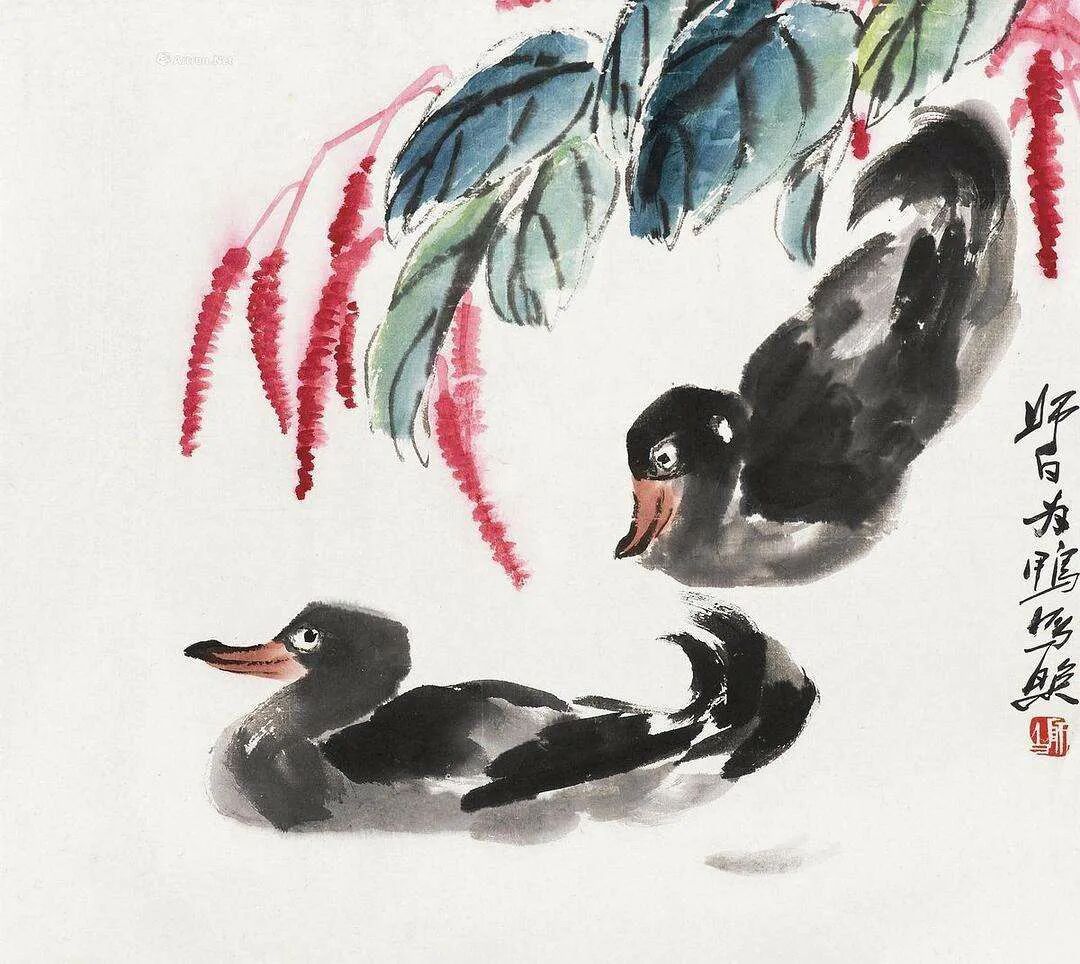 名家画廊 | 娄师白,继承齐白石艺术技法特色并有所创新,画作简练中有种生机勃勃的感觉,尤以画小鸭子著称。