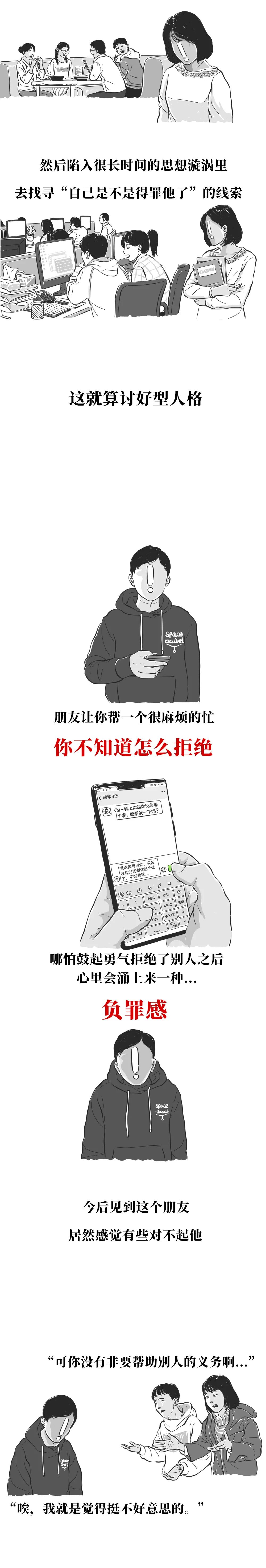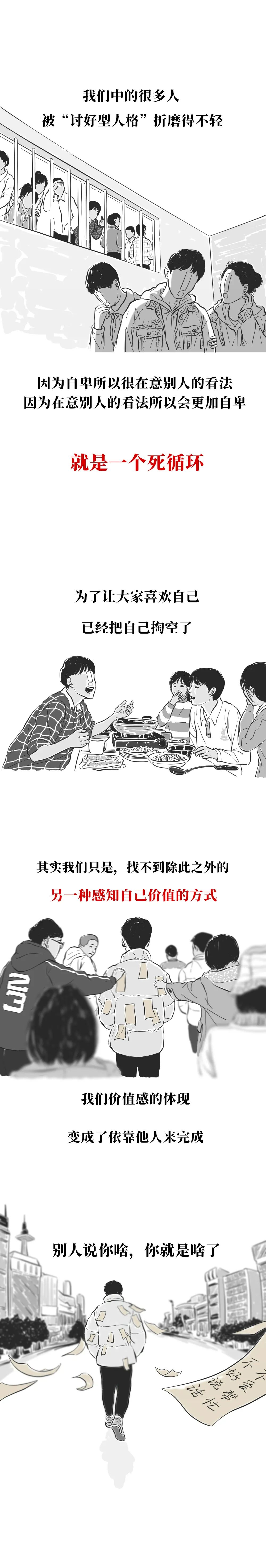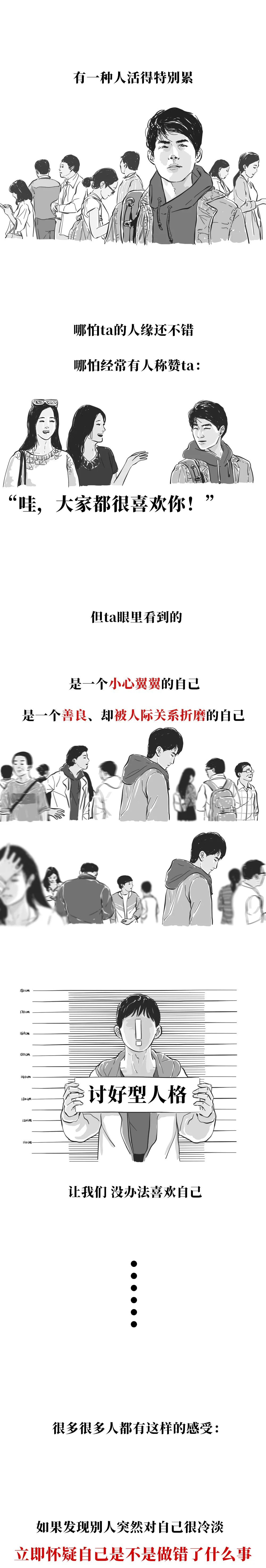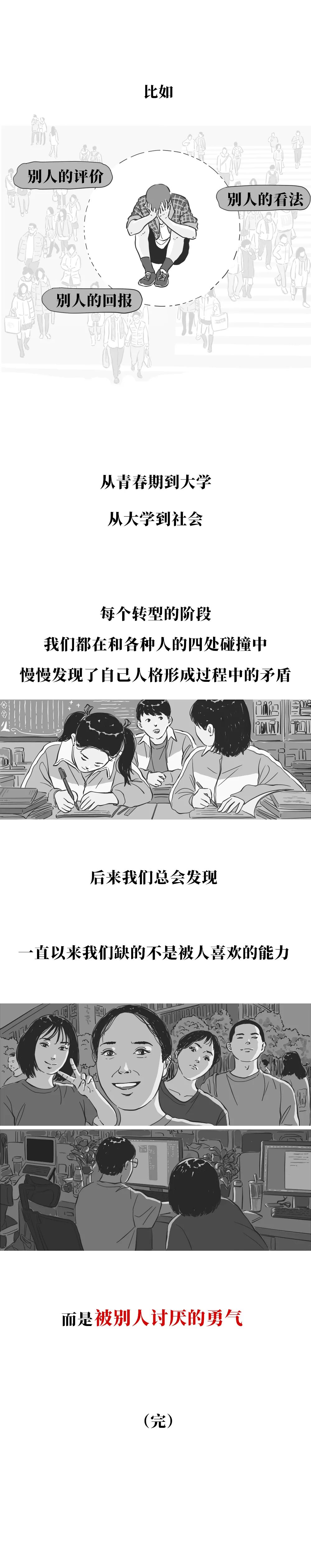 尝试拒绝尝试接受别人的讨厌不要试图操控那些不可控的别人的看法其实对于你并没有那么重要不需要事事都先考虑别人的感受不需要过分勉强自己去讨好不需要把自己的自信建立在别人的认可之上从心里去明确地告诉自己讨好并不能获得自己期望的回馈你值得一切美好- End -来源:黄一刀有毒