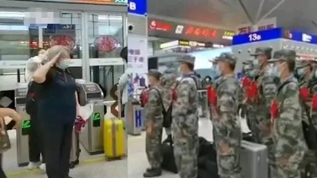 2020年除夕夜,大家都在家看春晚,一群最美“逆行者”出发了。 经中央军委批准,解放军派出3支医疗队共450人于1月24日晚分别从上海、重庆、西安三地乘坐军机出发,于当晚23时44分全部抵达武汉,开展救治工作。 军队支援湖北医疗队队员郭玮没有想到,摘下护目镜和口罩,她疲惫的脸庞上那“毁容”般的压痕,在网友眼中是那样的美丽。 那一天,关于“最美压痕”的微博话题,点击量超过了2.6亿。 2月17日,军队增派支援武汉抗击新冠肺炎疫情的又一批1200名医护人员,分别通过航空和铁路输送抵达武汉。 同日,两张蓝底白字的运-20“硬核机票”在网络刷屏,无数网友点赞。特制机票的正面是出发时间、姓名、航程等信息,背面是温馨提示和“向最美白衣战士致敬”。 在抗击疫情的一线,军医韩丙超在防护服上写上了“湖北姑爷”4个大字,随后走红网络。 他说:“我爱人是湖北天门人,我当然是湖北姑爷,我要告诉湖北的亲人们,我来了!” 今年年初,83岁的抗美援朝志愿军老战士张兆堂和老伴转入火神山医院后,病情多次反复。在医护人员的努力下,经过30多天的精心治疗,他们的病情一步步好转,最终达到了出院标准。 出院的时候,军队支援湖北医疗队的队员们以军人特殊的方式“批准”张兆堂出院,张兆堂也还礼,向医护人员表示感谢。这一幕,感动了无数网友。 2020年4月15日,最后一批回撤的军队支援湖北医疗队队员向火神山医院敬礼告别。 今年6月12日,贵州下起了特大暴雨。暴雨过后,武警官兵立即赶赴遵义市正安县碧峰镇转移被困群众,并全力抢通清淤。 在碧峰镇幼儿园的清淤现场,一个小女孩看到武警战士满手污泥,主动给战士送水喝,还着急地说:“你不用弯腰,我再端高点。”这一画面让网友们倍感温暖。 今年7月,多地发生洪涝灾害,子弟兵驰援抗洪一线。在抗洪一线的青年战士中,有许多“00后”的身影。在父母眼里,他们是孩子,穿上军装,他们就是战士。 抗洪一线定格的身影,让我们看到“00后”军人拼搏的模样。他们的肩膀,扛住了责任。 今年7月12日,武警第二机动总队某支队战士武迎港与战友们已经在大堤上奋战了两天两夜。抬头擦汗间,他看见一位双鬓斑白的老奶奶,正挑着行李艰难行进在泥泞的路上。武迎港连忙放下手头工作,径直跑上前帮忙。 老人不时用毛巾为他擦汗,嘴里直念叨着感谢。这一幕,远远看去就像是祖孙俩。老人为武迎港擦汗的瞬间被战友的手机记录下来,随后不经意间“走红”网络,感动了众多网友,大家纷纷留言赞叹这份军民鱼水深情。 这个夏天,在江西上饶抗洪一线的一位武警战士的照片刷屏网络,令无数网友感动和心疼。 照片中的战士是武警江西总队上饶支队机动中队的上等兵王子浩。这个2001年出生的小伙子,7月10日和部队一起,来到鄱阳湖大堤参加抗洪抢险救灾,当时已连续奋战数日,双臂晒出了上百个水泡。 今年9月10日,在郑州的高铁站内,一名头发花白的退休老教师遇到了入伍新兵。 老教师情绪激动,嘱托新兵们多多关照自己。希望他们保护好自己、保护好人民、保护好我们的国家,并敬礼向新兵们致敬。在场新兵也敬礼回敬老师。 许多网友看后都表示,这位老教师的话就像妈妈的嘱咐,太令人感动! 今年,国庆中秋“双节”同庆,节日氛围浓厚。10月1日,北京天安门广场举行升旗仪式,凌晨突然下起了雨,不少市民撑伞等待升旗仪式的开始,现场哨兵也是冒雨执勤。 当时雨突然下大,换岗的穿雨衣的哨兵还没来。不少市民便主动拿着雨伞为兵哥哥们挡雨,甚至有的淋着雨为他们撑伞。 “把伞收了吧,谢谢大家!”官兵们表达了谢意,随后后退了一步。这一幕,感动了无数人。 西藏军区某边防团的一个执勤点位驻扎在墨脱海拔4000多米的高山上,在那里,物资补给全靠官兵徒步接力。 每到雨季,连续的降雨导致地质灾害频发,连陆航运输直升机都难寻飞行“窗口期”。再加上所在区域海拔落差大、气候复杂多变,最前线的官兵们基本上是吃一些脱水蔬菜、干菜和罐头。 为了打通物资保障“最后一公里”,今年10月,陆军后勤部使用十多架多旋翼无人机无人直升机打通了空中物资投送通道让边防官兵们在山上就能吃到新鲜的果蔬、鸡蛋和肉食。网友纷纷表示,这样的硬核投送很给力! 今年,来自四川省革命伤残军人休养院的老兵涂伯毅的军礼,让无数网友泪目。 老人1949年入伍,是首批入朝参战的志愿军战士。在1951年农历大年初九的一场战斗中,涂伯毅被美军飞机投掷的凝固汽油弹严重烧伤。 转入四川省革命伤残军人休养院休养后,在休养院领导和战友的开导下,涂伯毅意识到,身体上的残废并不可怕,可怕的是精神上的残废。 他说:“虽然现在我的手蜷曲了,我的面容改变了,但是我的灵魂没有改变。只要是对党、对祖国、对人民有利的事情,哪怕再小我都要去做,而且争取要把它做好。”