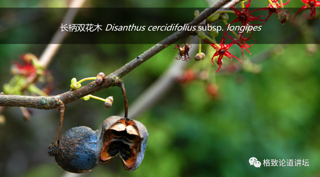 举个例子,这个物种叫做长柄双花木,是中国的国家二级保护植物,也是我在做博士论文的研究的时候,研究过的一个物种,这个物种分布在中国南方的山地里面。