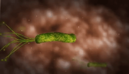 幽门螺杆菌进入消化道,在胃内粘膜上皮表面和胃粘液底层定植。螺旋状的外观使幽门螺杆菌可以在粘稠的胃液中运动,使之能够穿透胃壁,并产生中和胃酸的物质,改变周围的环境,降低酸度,而不会被免疫细胞杀灭,进而使胃细胞被强酸侵蚀,引发溃疡或更严重的疾病。
