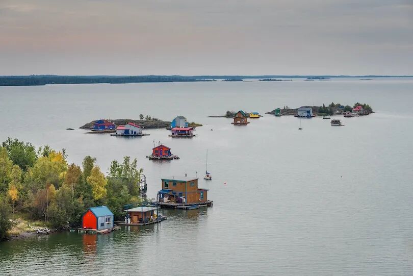 如今各种城镇坐落在湖边:其中包括Yellowknife、Fort Resolution和Hay River等。