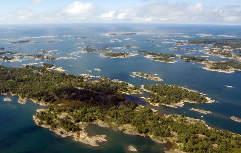 休伦湖由麦基诺海峡与密歇根湖相连,岸线长达3800英里,是五大湖中最长的,包含了3万多个岛屿。
