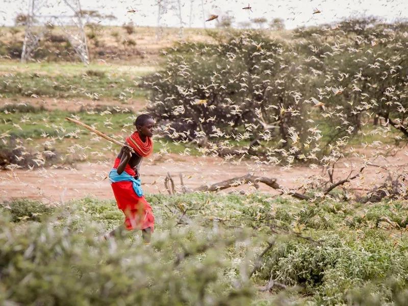 2月11日,联合国粮食及农业组织发出蝗灾预警,4000亿只沙漠蝗虫从东非越过红海,进入西亚。