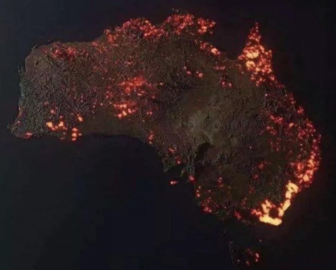 在烈焰的炙烤中,这片广袤的大陆被烧成一片血红,过火面积超过630万公顷。