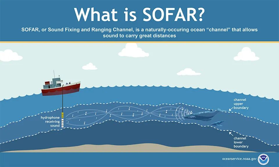 海洋中的远距离声音传播通道 SOFAR 声道。图片来源:NOAA