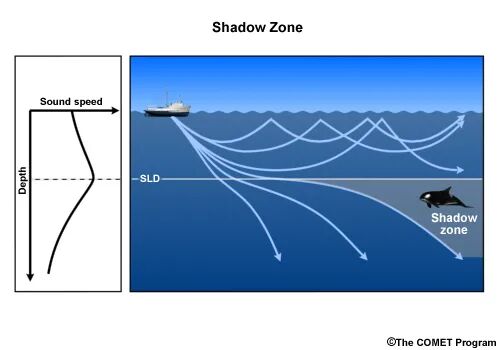 要理解这些可以玩隐身的声影区是怎么产生的,就要了解一下声音在水下的传播。