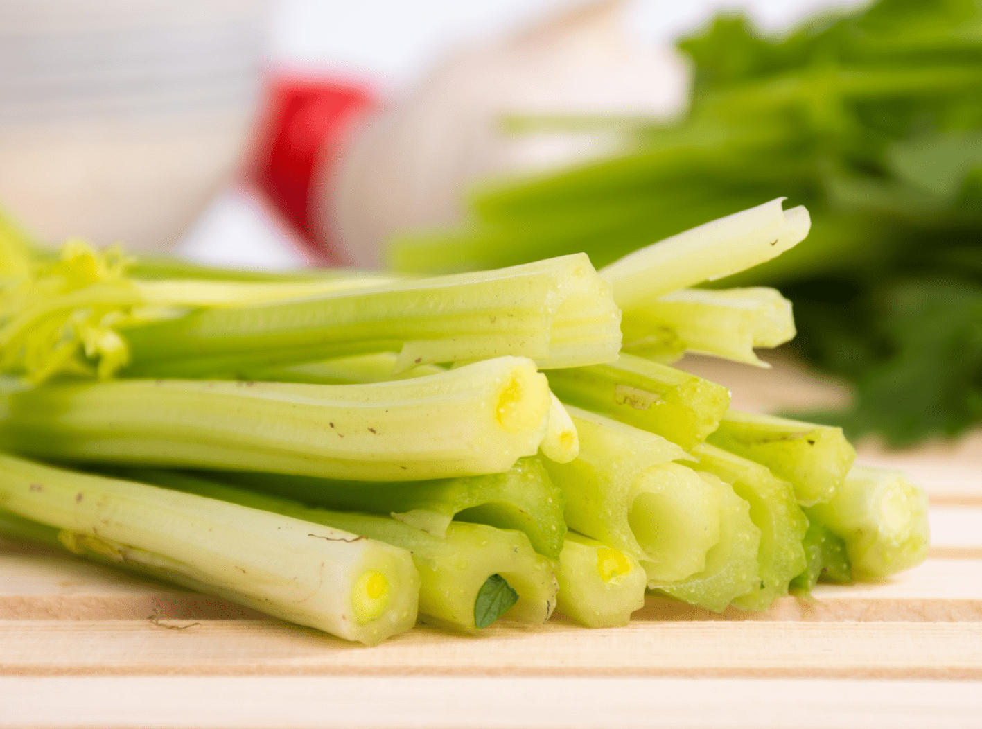 西芹虽然钠含量很高,但是在膳食纤维方面还是挺有优势的。西芹的膳食纤维比我们熟悉的香蕉的还要高0.8倍,香蕉膳食纤维为1.2mg/100g,而西芹则是2.2.mg/100g。