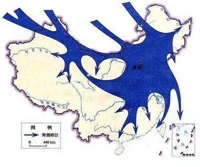 侵袭我国的寒潮路径