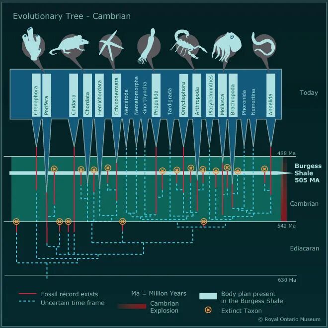 纵观整个地质历史中,生命为了适应环境不断地试探,不断地在失败中进化。紧随着寒武纪生命大爆发,我们可以看到生命在毫无目的的疯狂试探,不停地寻找出路,在短短的一亿年出现了众多稀奇古怪的物种,这些生物造型放在现代简直就像怪诞派的随意组合一样。当这批胡乱演化的寒武纪生命经过了奥陶纪生物大灭绝的重新洗牌之后,海洋生态系统似乎进入了一段平缓演化的时期,然而随着捕食者技术的提高和生物的快速进化,奥陶纪到志留纪的海洋却变得更加凶险诡异。