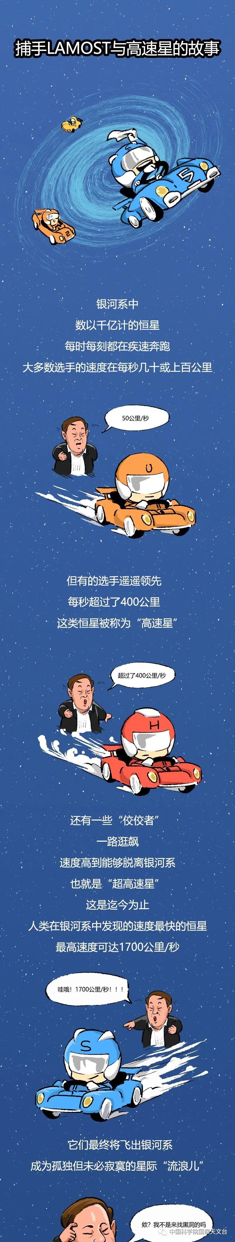 宇宙赛道上有数以千亿计的恒星,“领先集团”由极少数的高速星组成。车速太快容易冲出赛道,超高速星直接飞出银河系,开始流浪。风驰电掣难以看清,我国自主创新的LAMOST助你轻松观赛,不再担心错过精彩瞬间。