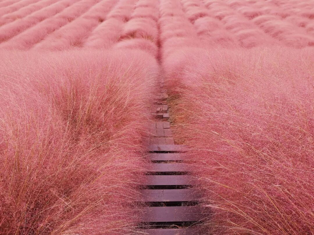 印象中,秋天是金黄色,金黄的玉米棒子,一层层码成金字塔;秋天是橘红色,橘红的柿子,串成线,连成片;秋天,也是枯黄的颜色,秋虫敛声,落叶遍地。可是当我站在网红草“粉黛”前面时,我眼前的秋色,分明是粉红色。秋天,原来也可以是粉红色的啊。