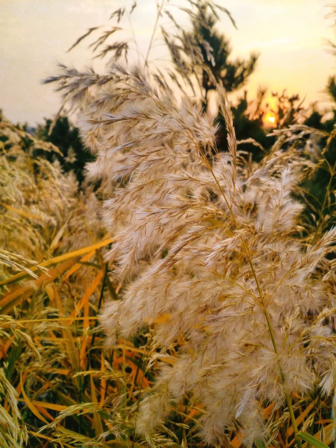 最美的画面,是蒲苇与夕阳合作完成的。夕阳西下,桔色的光线给蒲苇洁白的绒花勾勒出金边,与落日构成一幅秋日私语般的油画,让人不由得想起两句诗:落霞与孤鹜齐飞 ,秋水共长天一色。