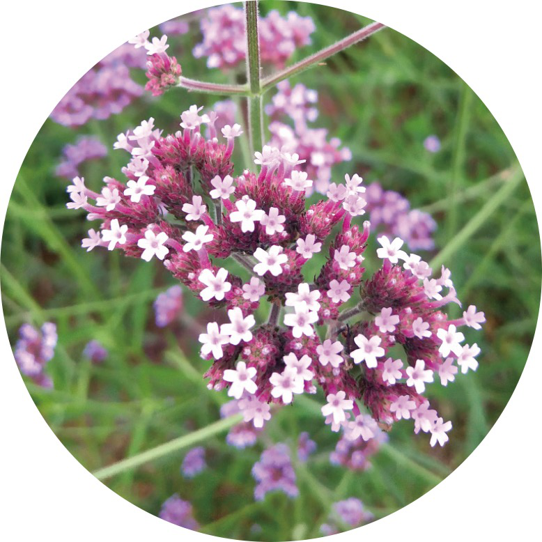 柳叶马鞭草的叶片狭长如柳叶,有着四棱形的直立茎干,高可达1.5米,纤细却非常柔韧,很少倒伏。茎干表皮粗糙,和对生叶子上的毛感一样强烈。紫色的合冠花,花冠管伸出花萼,先端五裂,简洁、纯净而美好。