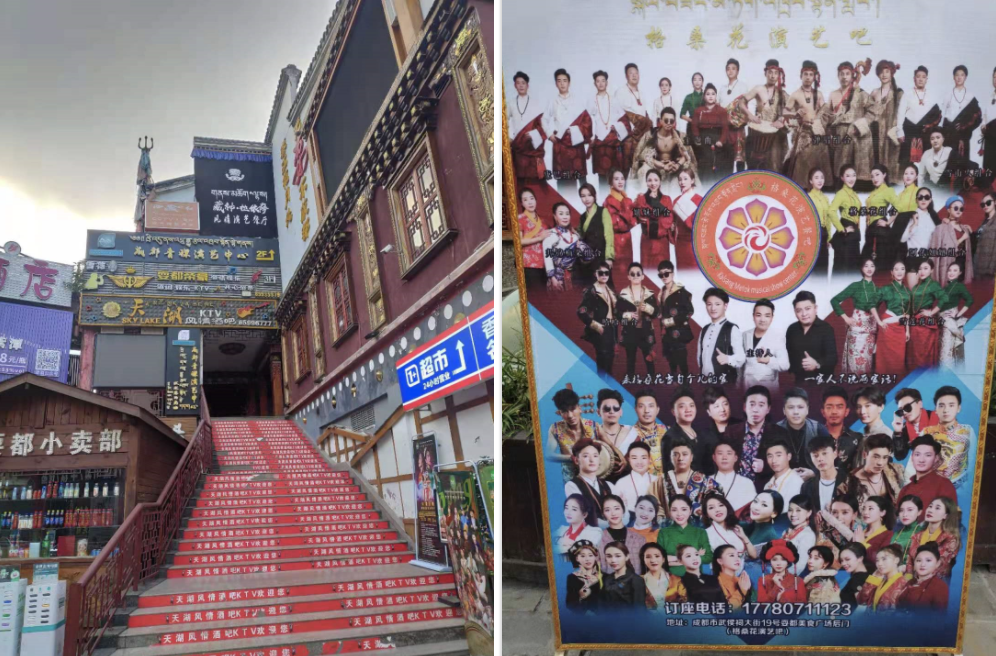 在成都最热闹的娱乐圣地「耍都」酒吧街,藏式演艺厅占据了半壁江山。