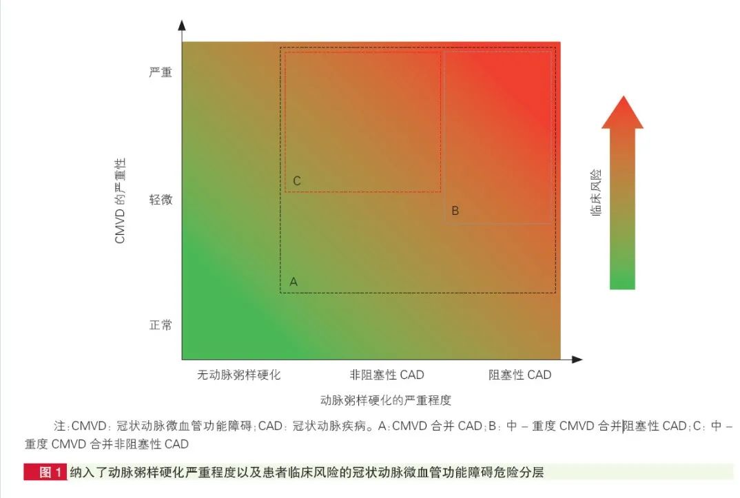 冠心病整体风险评估也需要考虑冠状动脉微血管功能障碍,依据是否合并动脉粥样硬化、微血管功能障碍的严重程度以及心血管危险因素等进行风险评估(图1)。