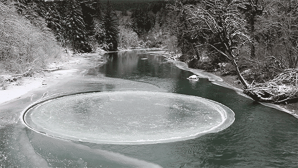 形成冰圈首先需要有流动的水体,比如河流的河道,在这些河道中,当温度降低,河面结冰,冰层下方的水流依旧在流动。一旦这里的冰层发生大面积破裂,在水流的带动下,破裂开的冰层就会发生旋转,旋转过程中破裂开的冰块不断与周围的冰层发生碰撞和摩擦,这时候这些破裂的冰块的棱角就会被不断破坏,最终形成没有棱角的圆形。