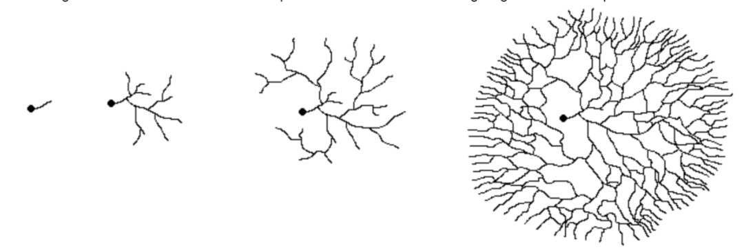 当一个蘑菇孢子飘飘荡荡到达一片新的土地,它会迅速在地下开始生长。在生长过程中,这些菌丝体会沿着所有方向均匀生长——也就是说,它们在地下的形态类似一个圆盘。