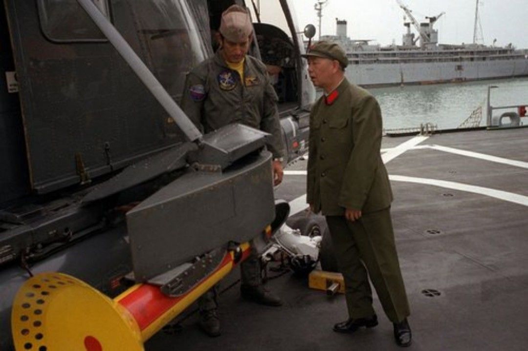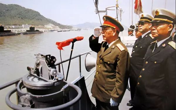 1983年2月,刘华清与南海舰队驻岛水兵交谈