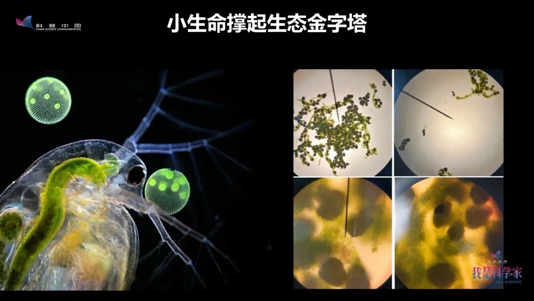 另外,我还研究了一个以藻类为食的初级消费者:微型浮游动物水蚤。它是滤食性动物,靠过滤水把食物拦截在它的消化道内。如果藻类被聚集到大颗粒中,它就没法吃到了。所以我们也观察到,微塑料颗粒存在时,大型蚤的摄食效率明显降低,最终会影响到种群的繁殖效率。