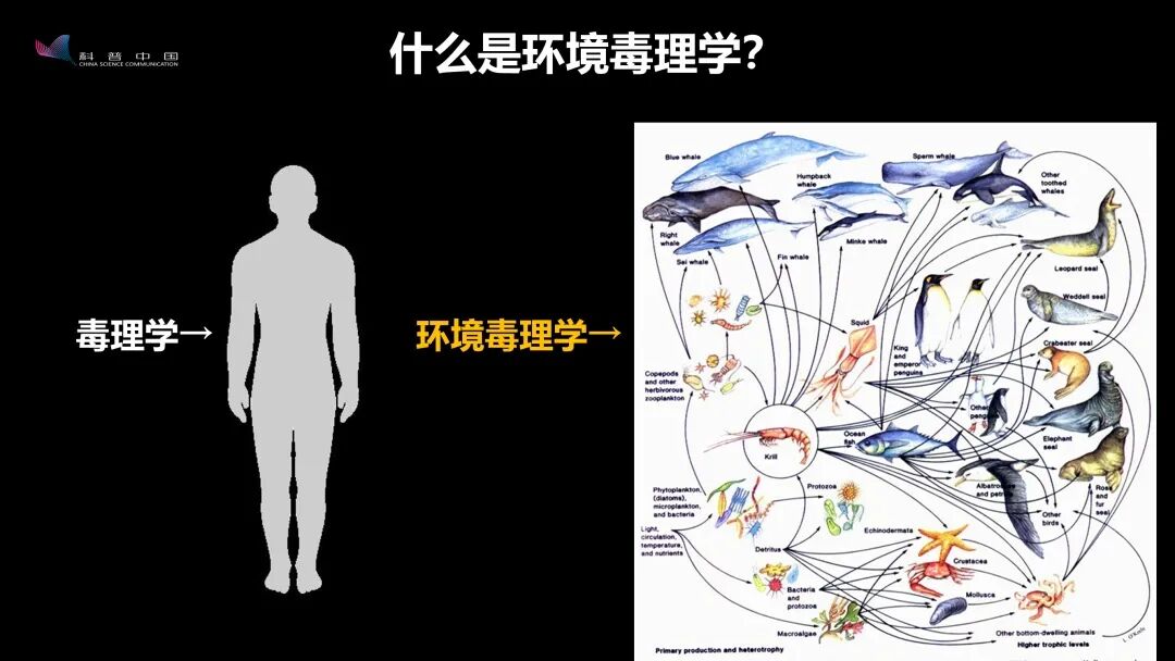 传统毒理学研究的是:“人”这种生物在接触到某些化学品后会产生什么样的毒性效应。而我们环境毒理学研究的是:除了人之外,这个现实环境中所有其他的生物在接触到某些污染物后会产生的效应,并且,因为这些生物间有千丝万缕的关系,那毒性效应会不会从一种生物迁移到另外一种生物,从一个种群迁移到另外一个种群?——这些才是我们环境毒理学研究的内容。