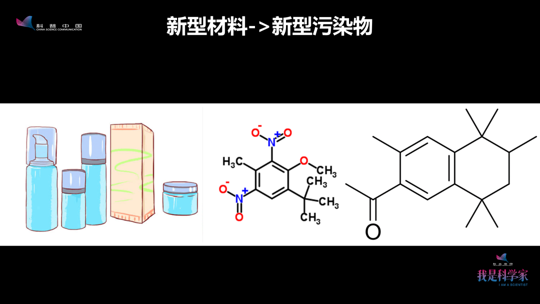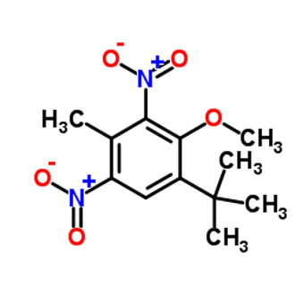 这张图表示的是硝基麝香,它是一种非常典型的人工香料。早先人们把它添加在化妆品中,以更廉价的价格给人们带来愉悦感。在硝基麝香投入使用前,也经过了安全评估,发现它对绝大多数人都没有毒性。但实际使用中,个别人接触后皮肤会出现过敏反应。所以,有机合成的研究者就又合成了另外一种化学品——没有氮原子的多环麝香,作为硝基麝香的替代品。