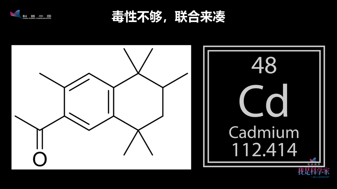 没关系,我们做毒理学研究,还有一种套路:当一种东西的毒性不够时,我们就拿联合毒性来凑。因为多环麝香在土壤中产生毒性效应,而土壤中又经常会有重金属污染,所以我们就考虑了镉——这种在土壤污染中同样普遍、毒性也非常大的重金属,看看它们会不会联合起来搞事情。
