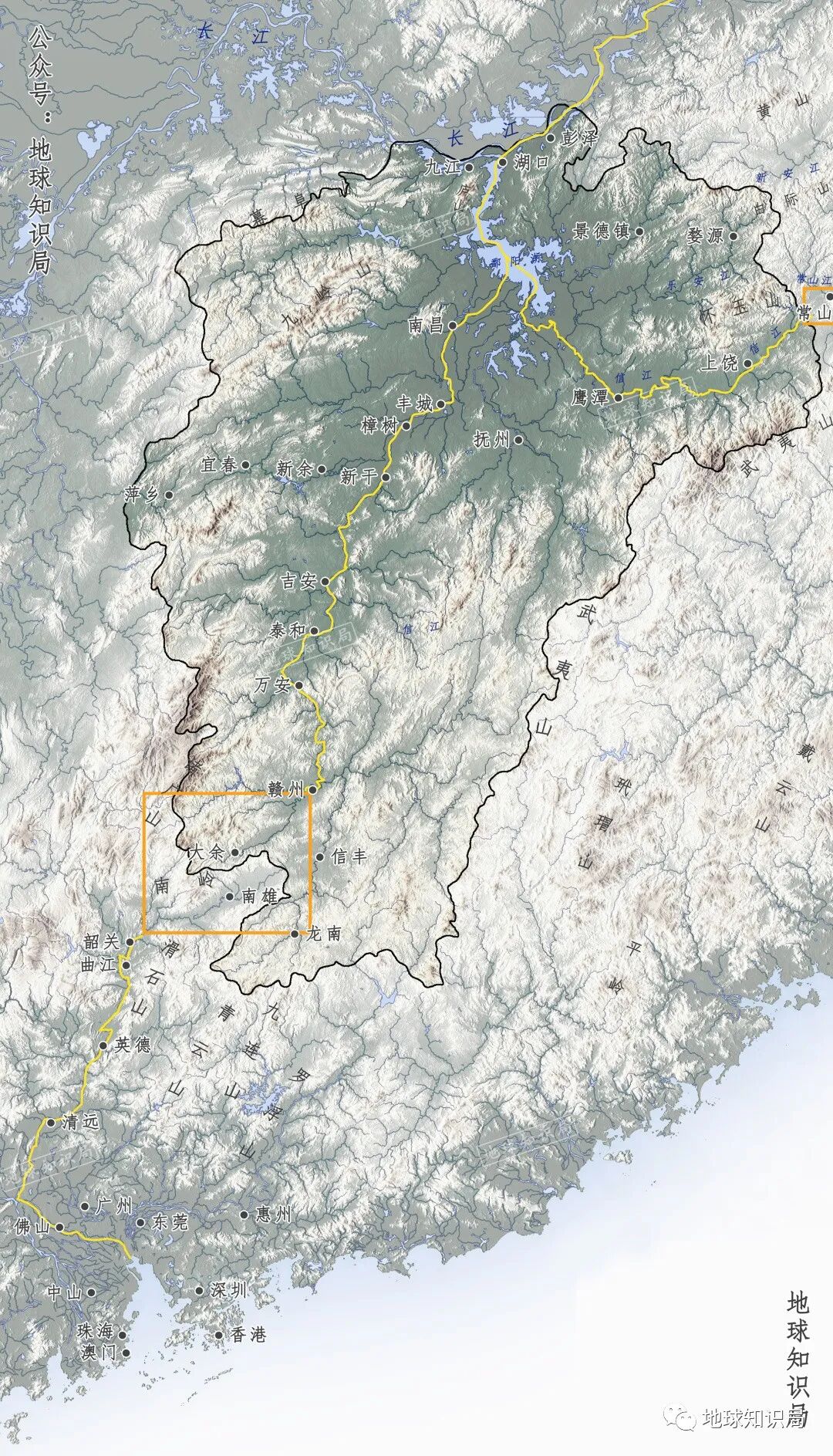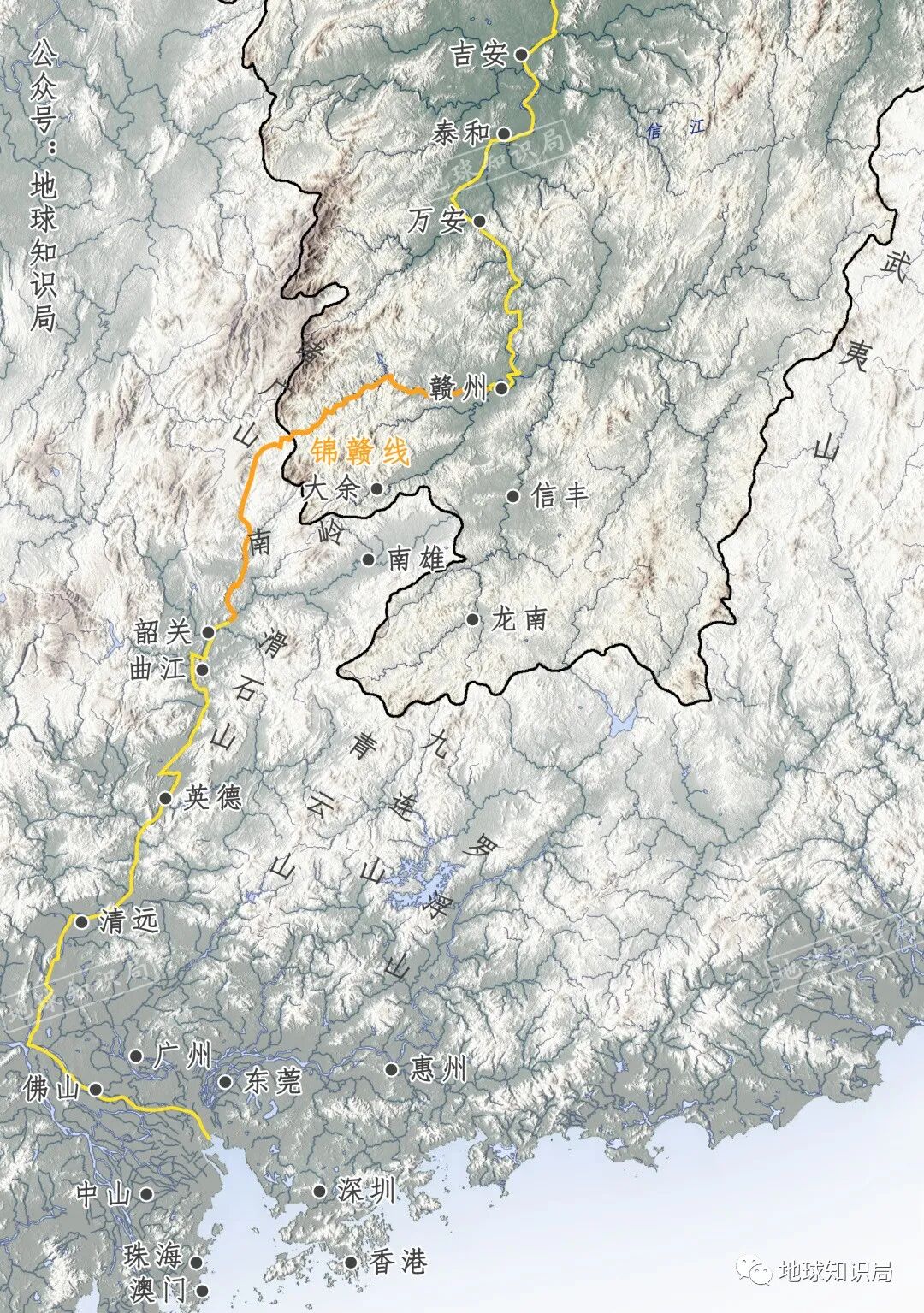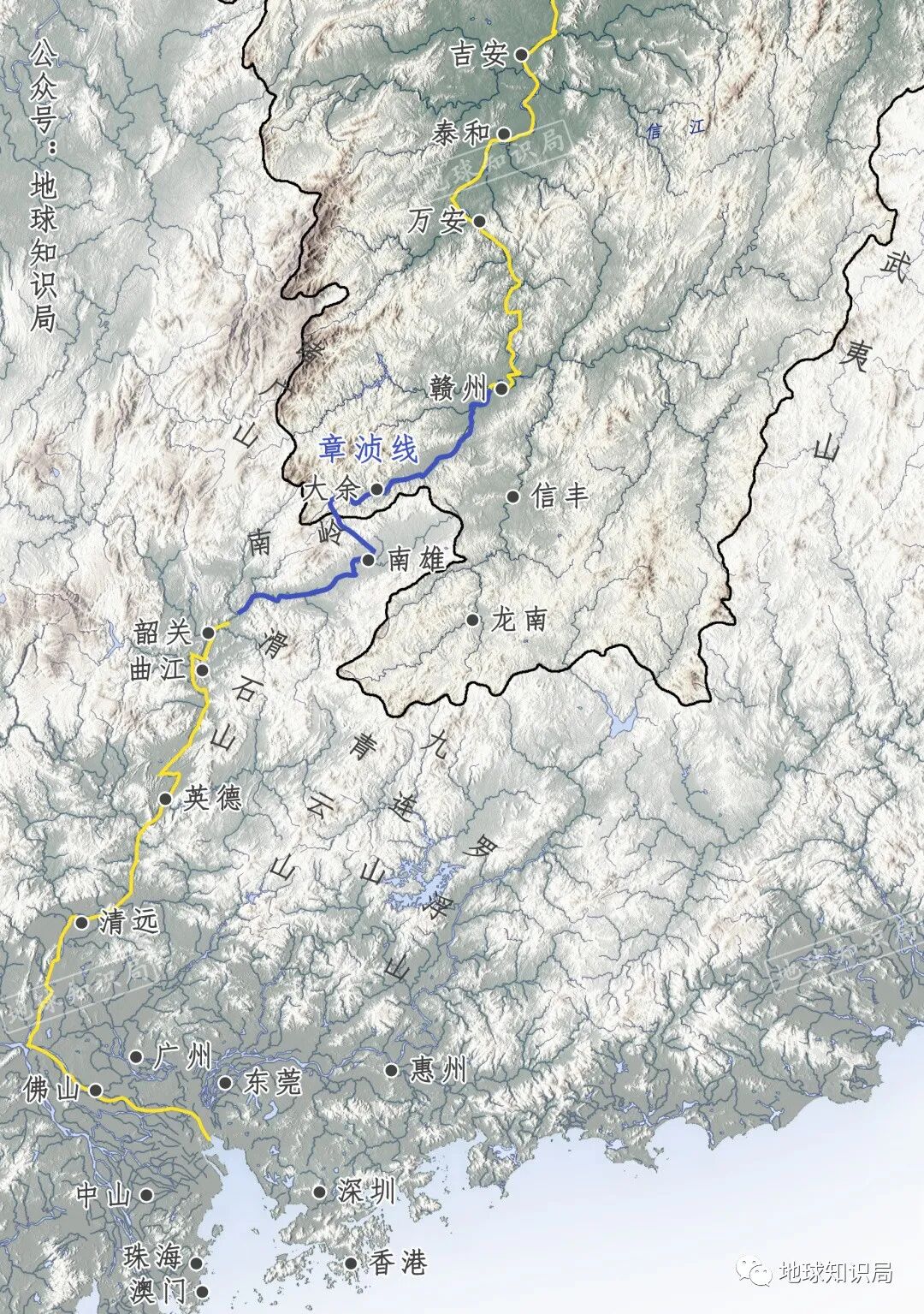从江西南部沿河流至珠江三角洲