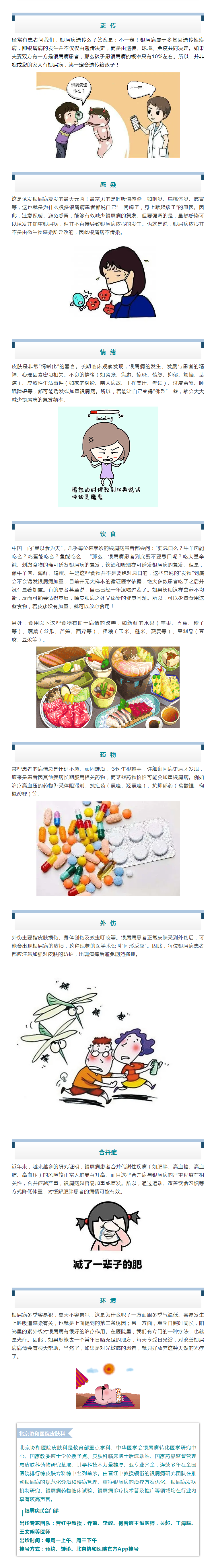 近日,北京协和医院皮肤科在原银屑病专科门诊的基础上进行了资源整合,新增设银屑病联合门诊,以进一步方便银屑病患者尤其是中重度患者的就医及规律随诊。银屑病即百姓口中常说的“牛皮癣”,在我国的患病率很高,我们周围200个人中可能就有一位银屑病患者。银屑病反复发作,可对患者的生活质量和心理健康造成较大影响。那么,到底哪些因素能导致“牛皮癣”的复发或加重呢?且看协和医生为您揭秘背后的原因——