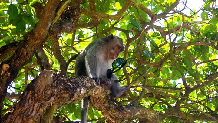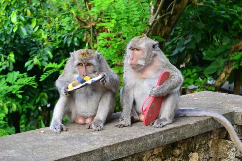 你可能会想,这个地方也太无法无天了,劫匪竟然如此猖獗;但你肯定也有些疑惑,这些劫匪怎么只要食物,不把手机、相机干脆拿走呢?嗯,因为这些“劫匪”不是人类,而是猴子,印尼巴厘岛乌鲁瓦图神庙周围的长尾猕猴。来自加拿大莱斯布里奇大学和印尼乌达亚纳大学的一项研究发现,这里的猴子通过几十年的迭代学习,已经理解了一定的经济学原理,在抢劫游客东西并勒索赎金(食物)时,经历了“前所未有的经济决策过程”。研究人员从2015年9月至2016年8月对333只自由放养的猴子进行了观察,历时273天,由两名工作人员携带摄像机对观察到的抢劫和“勒索”事件进行记录;之后又在2019年12月针对老中幼各5只,一共15只特定猴子进行了不同价值物品的选择实验。研究中猴子抢夺的物品按价值由低到高被分为6类:空的容器,如手机套、相机包等;饰品,如发夹、钥匙环等;帽饰,如帽子、围巾等;鞋子,如拖鞋、高跟鞋等;眼镜,包括太阳镜;电子设备和钱包,包括手机、相机、平板电脑和钱包等。这些物品被分为低价值、中价值和高价值三类,由2019年对15只猴子的实验确定。研究人员一共记录到了1084起抢夺事件,其中空容器127次,饰品107次,帽饰132次,鞋子466次,眼镜120次,电子设备和钱包132次。研究发现,低价值的空容器和饰品很少被游客赎回,只有8.4%和16.3%的易货交易发生;中价值的帽子和鞋子则分别有74.3%和75.8%的易货交易;高价值的眼镜和电子设备/钱包易货交易的发生高达90.6%和98.7%。你可能已经想象到会发生什么事情了,猴子打劫已开始“思考”经济学了。