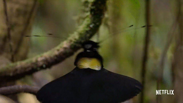 这个物种采用女追男的倒追模式。为了让可爱的龙虾姑娘们注意到自己,龙虾先生需要努力展现自己的实力。第一步是搞一套自己的(至少可以用的)房。 这套房需要大小合适,恰好容的下自己和女伴。争夺庇护所注定不会是个和平友善的过程,龙虾先生们会吹响战斗的号角。为了房,更为了男人的尊严。 好戏开始了。你会看到两只雄性龙虾相互“飙泪”——它们的眼睛下方喷射出一股液体 ,动力十足,直冲3米开外。战斗还没开始怎么就哭了?误会了。那不是眼泪,而是尿。 缅因龙虾的膀胱长在脑袋里,具体来说是脑子下面,一共有两个。这两个膀胱通过位于眼柄下方的喷嘴向外排出尿液。于是你便能看到尿从脸上喷出来如此科幻的景象。这身体构造有个好处,借助呼吸创造的水流,尿液可以喷的非常远, 距离有7个身长那么多(缅因龙虾身长平均20-61厘米)。 看起来是场有些怪异的战斗仪式,其实它信息量巨大。尿液是龙虾的语言,里面不只含有身体的代谢废物,还有重要的化学物质。你可能听说过昆虫通过费洛蒙来交流,不错,龙虾也有费洛蒙,而且就溶解在尿液里 。更优秀的龙虾先生,喷出的尿液中费洛蒙含量更高。而龙虾姑娘触角上敏锐的嗅觉感受器能区分出细微的浓度差异,慧眼识英雄,记住更厉害的那位。在经历了滋尿比拼和近身肉搏后 ,战斗才算最终结束。 研究发现,战斗后失败的龙虾先生会记住胜利者独特的尿味 ,在未来的一周都避免与其战斗——大概也是为了男人的尊严。至于胜利者,它们会信心倍增,不仅尿量变多,尿液中也会增添一剂专属于王者的费洛蒙,这是龙虾姑娘钟爱的味道。 有了房,同时展现了实力。龙虾先生接下来只需在家里静候龙虾姑娘的光临。现在轮到龙虾姑娘滋尿回应了。 她们会选定自己中意的庇护所,连续几天在门口冲着里面的龙虾先生的脸喷尿,只喷一点点,然后羞涩地溜走 。 往复几日后,龙虾姑娘成功入驻。雌性的尿液有两个作用,最显而易见的当然是向雄性传递明确的爱的信号 ,第二个作用则代表一种占有 。当庇护所散发着龙虾姑娘和龙虾先生的混合尿液气味时,就是在告诉其他经过的雌性:“喂,这里已经有女主人了。” 值得一提的是,龙虾姑娘在交配前还有一个有趣的行为——脱壳。脱去老的外骨骼后,雌性龙虾有了全新的精子库(尾巴下面用于存放雄性精包的小型容器),恰好是它们最佳的交配时机。 随后的故事就是你通常在纪录片里看到的那样了,龙虾姑娘变成了龙虾妈妈。 刚出生的小龙虾游泳技艺尚未成熟,可能会沉底。(来源:BBC Earth) 这就是缅因龙虾求偶的故事。故事中提到的费洛蒙,又名信息素,这是动物界很常见的一种用于信息交流的化学物质。 陆地上的动物依靠空气来散播信息素,所以它们的信息素一般具有挥发性。而在汪洋大海中,信息素则需要以水为媒介向外传播 ,此时借助尿液的喷射便是个不错的选择。信息素常见于雄性动物间的攻击行为 ,以及对物种繁衍至关重要的求偶行为 。 对整个动物界来说,个体间的信息交流都必不可少。除了化学信号,有的物种还会用到语言(如鸟鸣),或者是行为动作。求偶状态下的动物往往能展现出令人惊诧的行为,除了喷尿的龙虾,还有很多鸟类会挥舞翅膀跳起求偶之舞。 其中不得不提的一种是极乐鸟(birds of paradise) 。它们分布于巴布亚新几内亚、印度尼西亚群岛以及澳大利亚东北部。如果你没看过极乐鸟求偶时候的样子,我打赌接下来的画面一定会让你讶异。 它们在求偶时会炸开颈部的羽毛,露出魔幻的笑脸,展现出完全不像一只鸟的样子。此时的雌鸟一脸懵圈。 别怀疑,那个像智能音箱的东西就是极乐鸟。(来源:BBC Earth)或者挑逗般地闪烁着彩色羽毛,俨然一副“你看一眼,没了,哎又有了”的幼稚模样。 (来源:NETFLIX | OUR PLANET) (来源:NETFLIX | OUR PLANET) (来源:NETFLIX | OUR PLANET) (来源:NETFLIX | OUR PLANET) (来源:NETFLIX | OUR PLANET) 雄性的风采都是为了抱得美人归,它们努力表现着自己,试图告诉未来的伴侣:我的基因还不错,选择我是对的。