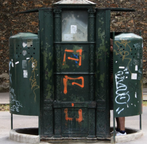 更有趣的是,这些露天小便池,在当地的使用频率还非常高。为什么欧洲人民会这么青睐半开放的街头厕所呢?一个是自身原因——街头小便池在欧洲有近200年的发展史。19世纪的欧洲人民保留着一项恶习——随地大小便,而这番「壮举」一度令许多城市被排泄物的气味完全覆盖,其中不乏伦敦、巴黎等大城市。终于,在1830年春天,法国巴黎市政府决定在主干道上安装第一个公共小便池。这种露天小便池与周围的建筑彼此独立分离,搭建、拆除都非常便捷,还可以提供一个轻便的公共空间。于是,在后续的几十年,露天厕所在法国迅速发展起来。在它们的全盛时期,巴黎街头的小便池一度超过1500个,它们形状、大小和构造各不相同。时至今日,随地大小便这个恶习并没有因为科技与文明的进步,而从欧洲消失。法国内部数据亮出一个明确数字——40%法国男人有频繁随地大小便的习惯,这个「频繁」是能被谷歌街景拍下来的那种「频繁」。所以,这项陋习还存在一天,露天小便池就仍然肩负重任。