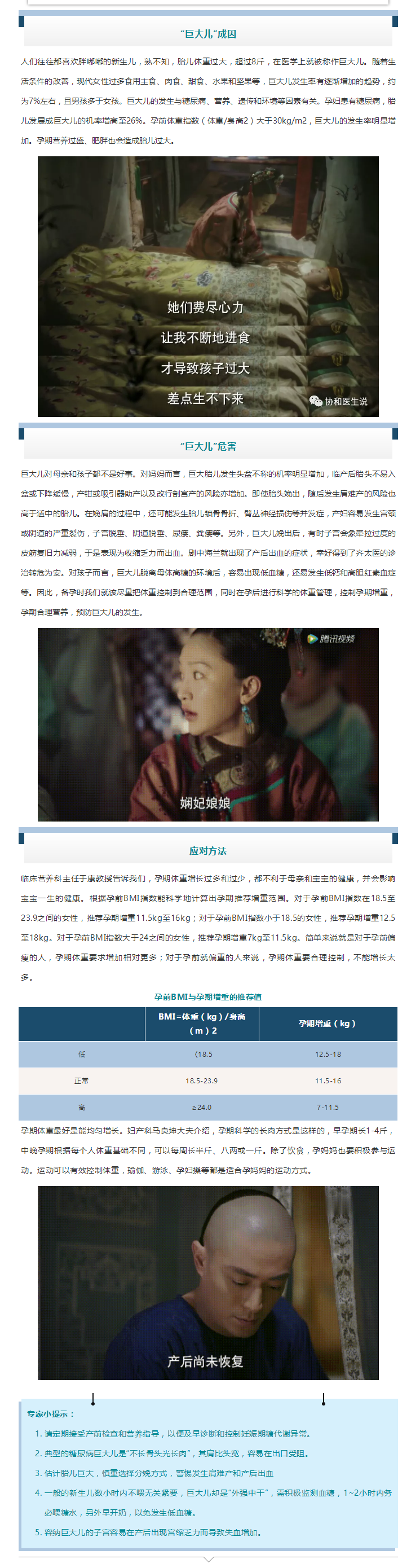 《如懿传》第30集真是大快人心,卖主求荣的阿箬受到了应有惩罚,海兰也生下来五阿哥。皇上欢喜得不得了,抱着五阿哥说:“这孩儿确实比一般的孩子要大两圈。”联系前文介绍过海兰孕中后期吃得多、吃得好,剧中的五阿哥应该是出生体重超过8斤的巨大儿。这究竟是怎么回事儿呢?一起来听听我院于康、马良坤教授怎么说吧!
