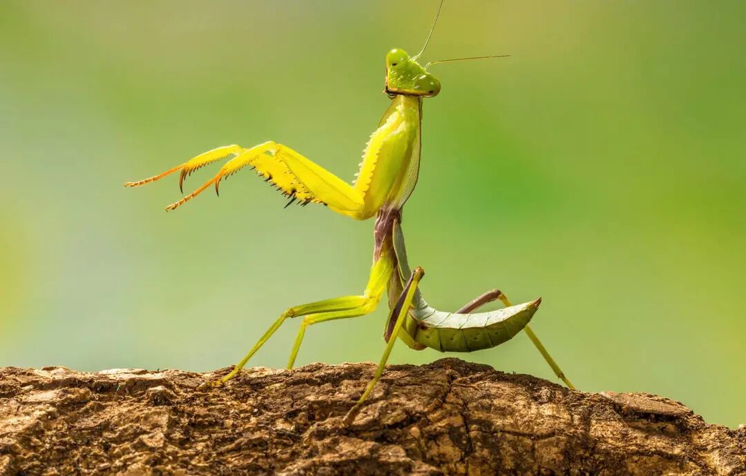 提起螳螂,你首先想到的是什么?肯定是那对夸张的强大镰刀状前足,随时可以致其它生命于死地。最可怕的是,这对前足还是雌性螳螂在交配时的觅食利器,只是她们觅食的对象不是苍蝇蚊虫,而是正在“她”身上播种遗传物质的“新郎官”——雄性螳螂,往往交配还没完,甚至还没有发生,新郎官的脑袋就已经进她的肚子了。