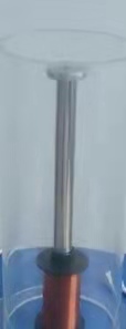 原理:当按下电钮接通电路时,套在柱子中间的小铝环会突然跳起来,而后又悬浮停在柱子中间,并能悬浮一段时间,这一现象被俄国物理学家进行了仔细的研究,就是楞次定律。当按动电钮、接通电流,线圈产生交变磁场,会在小铝环中瞬间产生了感应电流,感应电流磁场的方向与线圈磁场的方向相反,小铝环会跳了起来,随后又降了下来,交变磁场的不断变化使得小铝环上下运动,终找到平衡点,小铝环便被无形的电磁力慢慢地托了起来。人民根据楞次定律发明了交流异步电动机,电磁阻尼器、电涡流传感器、电磁炉等许多的电磁设备,造福于人类。