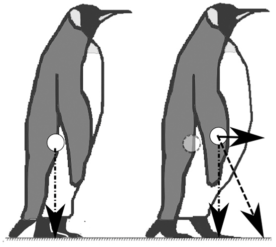假如企鹅没了摇晃的侧向运动,那么它的步行效率将会降低很多。因为企鹅的左右摇摆的时候,重心会发生变化,产生重力势能,进而转化为动能。