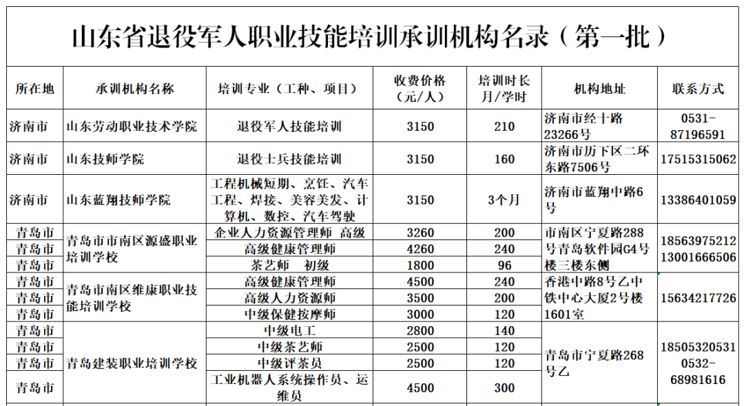 青岛市政府办公厅印发 《关于退役军人等办理“荣军卡”有关事宜的通知》 将为青岛市退役军人等办理“荣军卡” 持卡可免费乘坐城市公共交通工具、 免门票费游览政府定价的 公园、景区、博物馆等场所 “荣军卡”为搭载琴岛通卡功能的 银行借记卡 实行实名制管理,办理条件为 具有青岛市户籍 且在退役军人事务部门进行信息采集 经审核确认的退役军人及烈士遗属、 因公牺牲军人遗属和病故军人遗属 以及已移交青岛市安置的 军队离退休干部和退休士官等 “荣军卡”办卡、补卡、换卡费用全免 青岛市“荣军卡” 将在2021年3月1日正式启用 分为集中办理和个人办理两个阶段 集中办理时间为 2021年2月1日-2月28日 (法定节假日除外) 集中办理阶段结束后 符合办理“荣军卡”条件的人员 可在完成信息采集并审核通过后 持身份证等 到“荣军卡”合作银行营业网点办理 文件同时公布 包括崂山风景区、 青岛海产博物馆(水族馆)、 青岛动物园等在内的 第一批共15家公园、景区、博物馆 将向全国现役军人、退役军人 免门票开放 现役军人持有效证件、 退役军人持“荣军卡”或其他有效证件 均可免门票费游览 青岛市还将组建“荣军联盟” 招募餐饮娱乐、商贸商超、文化旅游、 医疗康养、教育培训、交通物流等 各类企业和机构加盟 组织开展“千企万店齐拥军”活动 共同为现役军人、退役军人等 提供优质服务 岁末年初 许多的好消息不断传来 温暖了老兵的心 让越来越多的退役军人 实实在在地享受尊崇、收获幸福 1月16日 天津市首家退役军人医院 揭牌成立 医院揭牌仪式 目前,凡持有 《天津市和平区退役军人就医优待证》的 和平区户籍的退役军人和优抚对象 以及和平区军队离退休干部 在和平区退役军人医院就医 可享受门诊挂号、缴费、检查优先服务、 急诊绿色通道服务、可先就医后交费、 挂号费全免费、检验费按八折计费 还有家庭医生、远程会诊等普惠服务 医院的退役军人优先窗口 对立功受奖人员、残疾军人 领取定期抚恤和定期补助人员 还可叠加享受 住院床位费减免优待服务 医院还明确了 随着国家退役军人优待证统一发放 全国各地的退役军人和优抚对象 也可享受上述普惠、优待服务 近日,江西省收到 中国退役军人关爱基金会 捐赠给江西省退役军人的 110万份保险申领保单 全省随即加快推进 保险分配、申领工作 此次的退役军人家庭免费保险 包含新冠肺炎、 家庭财产相关保障权益等6个险种 退役士兵、复员军人、残疾军人、 烈士遗属、因公牺牲军人遗属、 病故军人遗属、军队转业干部、 军队离退休干部和离退休士官、 无军籍离退休职工、现役军人家属 共10类人群 为了让省内 109余万退役军人及其家庭 及时享受到该政策 江西全省22826个村(社区) 退役军人服务站迅速行动 以电话通知、微信群发等方式 挨个通知辖区内退役军人 及时到村(社区)填报免费保险申领表 逐一通知到位 同时派出服务专干 并为其答疑解惑 量身定制! 退役军人职业技能培训 助力老兵就业 2020年11月 宁夏退役军人事务厅制定出台了 《关于做好全区退役士兵职业技能示范性培训的方案》 近日 由宁夏退役军人事务厅组织的 首期退役军人职业技能培训班如期开班 在内容设置上 针对每名退役军人的个人意愿 并结合社会岗位需求 量身打造培训课程 在日常管理上 实行半军事化管理 并安排经验丰富、责任心强的 班主任全程管理督导 据悉,2021年 宁夏退役军人事务厅 将进一步整合教育培训资源 构建政府支持、社会参与的 退役军人多层次、多样化教育培训体系 确保每名退役军人 都有业可就、有岗可上 近日,山东省为进一步规范 退役军人职业技能培训承训机构管理 帮助退役军人提升就业能力 确定了省内第一批 退役军人职业技能培训签约机构 共151家单位 部分培训机构名称 注:退役军人职业技能培训承训机构名录实行动态管理,将根据工作实际、培训组织情况及绩效评价结果按期调整公布。 有职业技能培训意愿的退役军人 可结合自身实际和职业发展规划 在所在市内确定的 退役军人职业技能培训承训机构 自行选择专业(工种、项目) 接受一次免费职业技能培训 期待越来越多的暖心政策 惠及万千退役军人 让他们拥有更多的 荣誉感、幸福感、获得感! 来源:解放军报(ID:jfjbdzzy),综合中国国防报、中国退役军人、青岛市退役军人事务局 等 本期编辑:胡程远、赵雅娇