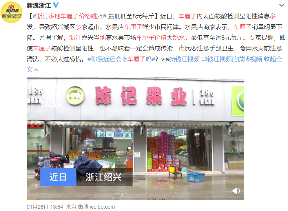 车厘子价格最低低至每斤八元,图片来源微博