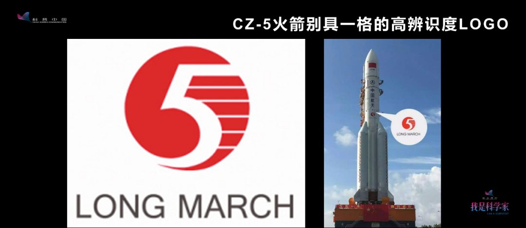 长五火箭还有一些比较显著的特点。比如,它有一个很显著的标志,是大大的红色的“5”,看上去非常协调。我不知道是不是因为我们设计了它,感觉它就像我们的孩子,所以,不管从哪个角度看,左看右看上看下看,都觉得它漂亮。