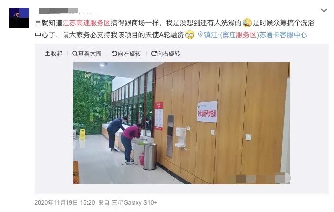 有人第一次去梅村的服务区,发了条朋友圈表达感受:厕所干净到大家可以坐在地上休息。