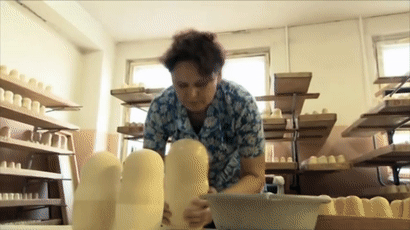 这些被淀粉包裹的人偶需要静置约3天时间,完全干燥之后,就可以被运走上色了。